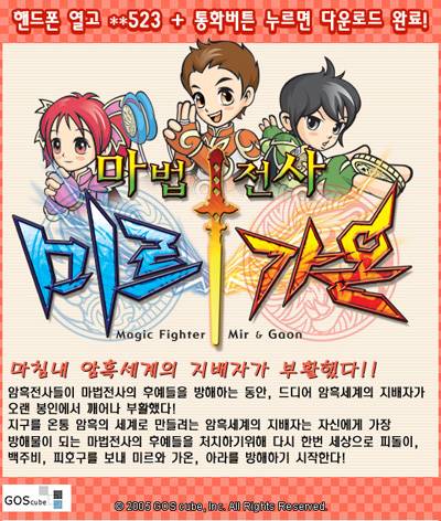 지오스큐브(대표 고평석)가 모바일게임 '마법전사 미르가온'을 SKT와 KTF를 통해 서비스한다고 24일 밝혔다.