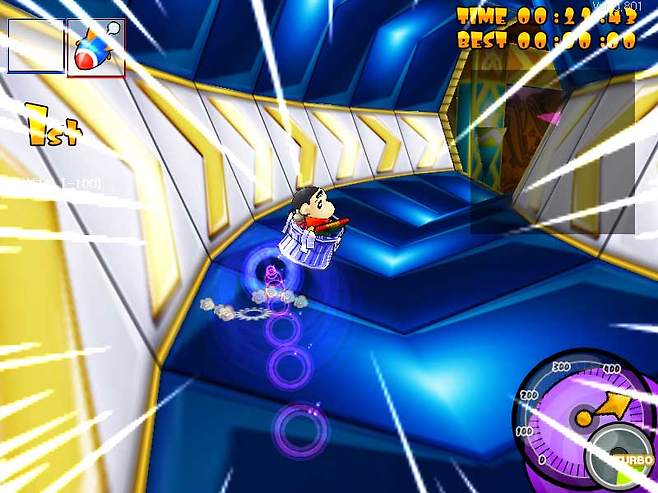 또 맵은 '부리부리왕국' '카스카베 마을' 등 원작만화에 등장하는 지역을 형상화해 친숙한 느낌을 주며 맵 선택 시 난이도를 지정할 수 있어 초보 게이머는 물론 고수 게이머까지 모두를 배려했다.