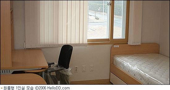 방에는 보조책상을 여닫을 수 있는 책상, 침대,옷장이 갖추어져 있으며 각각 랜포트 3개와 전화 시설, CATV설비 등이 설치돼 있다.