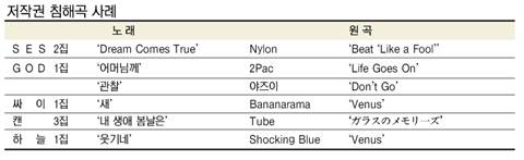 외국 직배사에 음원 수익금 100% 지불박진영·싸이 등 ''표절 논란'' 수습GOD·SES·싸이·하늘·캔 등 음반 ''저작권 침해'' 뒤늦게 드러나
