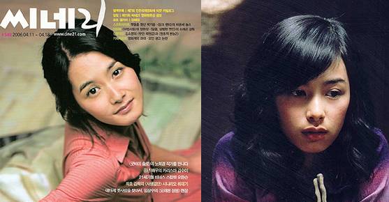 <사진>위 오른쪽은 시네21 최신호 표지에 등장한 강혜정, 오른쪽은 '연애의 목적' 출연 당시. 아래 사진은 지난달 31일 보철을 하고 '도마뱀 제작보고회'에 참석한 강혜정