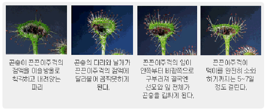| ◇ 끈끈이 주걱의 사냥하는 모습. 단계별로 보기. |