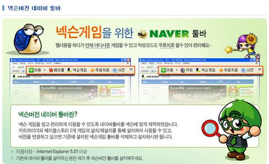 넥슨버전 네이버 툴바에 대한 자세한 사항은 넥슨 홈페이지(www.nexon.com)에서 확인할 수 있다.