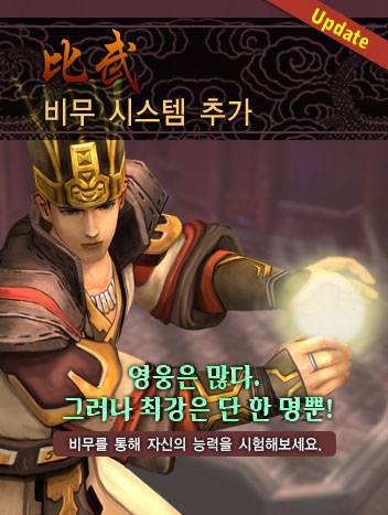 이번 업데이트 되는 비무시스템은 비무를 원하는 상대방을 클릭한 후 타겟 창의 상호작용 메뉴에서 '비무 신청' 메뉴를 클릭하고 신청을 받은 상대방이 승낙하면 그 즉시 비무가 시작되며 서로를 공격할 수 있게 된다. 비무는 안전지역, 전투지역 구분이 없이 어느 장소에서도 가능하다.