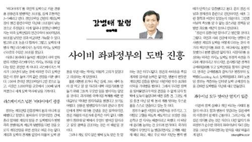 한국 강병태 위원 "열등한 얼치기 좌파정부의 도박진흥"