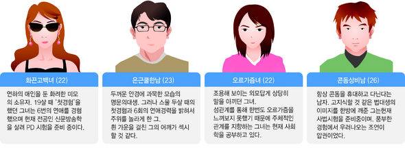 화끈고백녀: 난 다 한다. 처음엔 안 그랬는데 이젠 "오늘은 내가 위에서 할까?" 등 서슴없이 다 얘기한다. 남자친구가 항상 관계 후 나의 반응을 꼼꼼하게 살핀다. "좋았냐"고 묻는다.