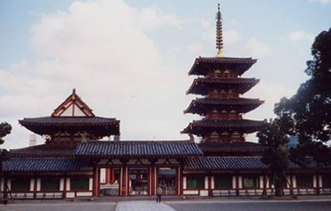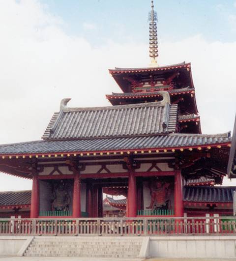 시텐노지는 불교의 수호신 지국천을 비롯한 사천왕으로 부르는 4신을 받들기 위해 쇼토쿠태자가 세웠다. 12세의 독실한 불자였던 홍안 소년 마구간왕자(뒷날의 쇼토쿠태자). 이 소년은 불교에 목숨을 걸겠다고 하리만큼 열정적이었다. 그러기에 그는 587년 7월 조정의 불교 반대파를 무찌르는 전쟁터에 몸소 참전했다.