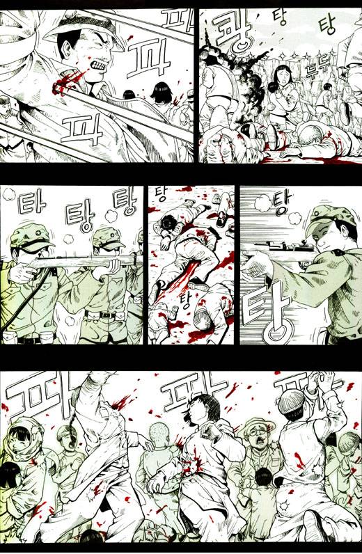 "유태인 대학살. 일본 원폭과 함께 2차 세계대전 3대 비극의 하나로 꼽히는 난징 대학살을 평소 조명하고 싶었다. 한 달 동안 무려 30만 명이 죽었다. 우리와도 무관한 일이 아니다. 한국에서 일어난 학살들도 조사하고 있다. 이것들도 언젠가는 만화로 만들려 한다. 한국 전쟁 시절 대량 학살이 자행된 문경·포항·영천·유성 등을 돌아다니고 있다."