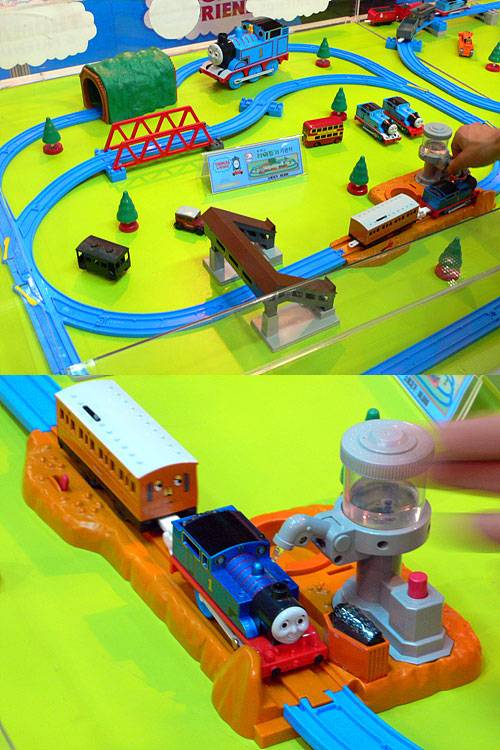 ◇ 에이치아이무역의 토마스 타워증기기관차. 토마스 캐릭터를 이용한 이 제품은 물탱크 타워가 내장되어 있어 기관차에 물을 충전하면 실제 증기가 뿜어져 나온다.