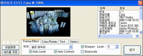 | ▲ 자동으로 사진보정을 하게 한 후 미리보기를 누르면 우측에 사진정보가 나옵니다. |