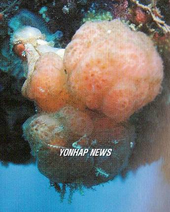(제주=연합뉴스) 홍동수 기자 = 국립수산과학원 제주수산연구소가 제주 연안에서 발견해 '인공어초 부착생물 도감'에 수록한 국내 미기록종 '방사딸기만두멍게(Synoicum pellucens)'. <제주수산연구소 제공>