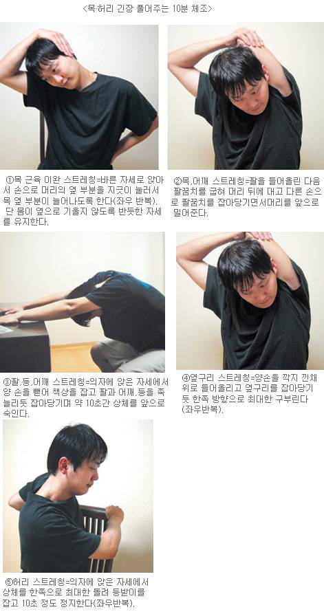 오 박사는 "이런 통증을 방치하면 긴장성두통과 소화불량증,불면증을 초래할 뿐아니라 경직된 근육들이 지속적으로 뇌에 산소와 영양을 공급하는 혈관을 압박,머리를 무겁게 하며 집중력까지 떨어트릴 수 있다"고 지적했다.