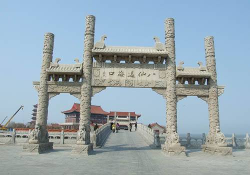 팔선과해의 입구에 들어서니 당송팔대 문장가인 소식이 쓴 '팔선과해구(八仙過海口)', '인간선경(人間仙境)' 글씨가 우뚝하게 솟은 문 위에서 우리를 반기었다. 시서화에 뛰어났던 소동파가 등주 태수로 있으면서 이 명문을 남겼다고 한다.