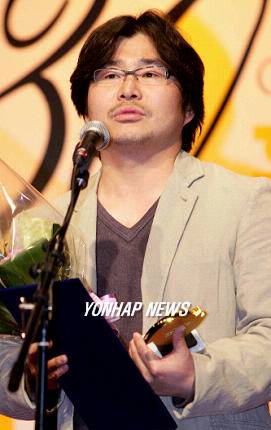 (서울=연합뉴스) 강영국기자 = 30일 오후 그랜드 인터콘티넨탈 호텔 그랜드볼륨에서 열린 제 30회 황금촬영상 시상식장에서 최고의 촬영상 동상을 수상한 영화 '중천'의 김영호 촬영감독.
