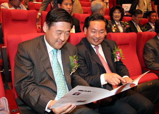| ◇ 11일 하남문화예술회관 개관기념식 후 관람석에서 공연에 대한 의견을 나누고 있는 김황식 시장과 중국 유산시 이홍의 시장. ⓒ 이병훈기자 |