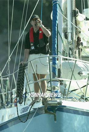 epa01019149 Blind American sailor Scott Duncan onboard his yacht 'Blind Sailing' after arriving at Rush Cutters Bay in Sydney, Friday, May, 25, 2007. Duncan and partner Pamela Habek who are both blind are circumnavigating the globe, departing from the Golden Gate Bridge in 2004. Their passage to Australia has taken them across the Tasman Sea, renowned to be one of the most gale swept bodies of water in the world. EPA/SERGIO DIONISIO AUSTRALIA AND NEW ZEALAND OUT