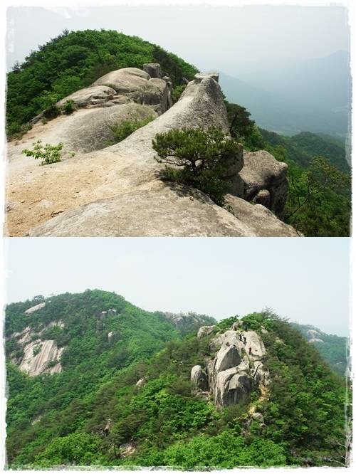이곳에서 이어지는 능선은 주변의 조망이 좋고 풍경이 무척 아름답다. 낭만을 느낄 수 있는 세미클라이밍코스도 지난다. 3개의 봉우리를 넘어서면 능선에 멋진 형상의 바위들이 나타난다.