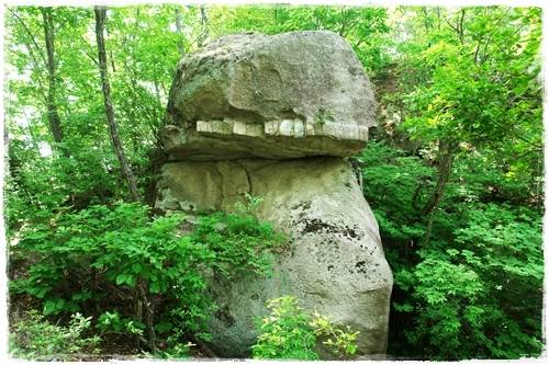 이빨바위를 보고 능선을 따라 내리막길을 가다 보면 작고 볼품없는 데다 나무에 가려 사람들의 눈길을 끌지 못하는 암석이 있다. 언뜻 보아도 우리 문화에 관심이 많은 사람의 눈에는 석장승을 너무나 닮았다. 그냥 지나치지 못하고 '석장승이라면 왜 이곳에 서 있을까'를 생각했다.