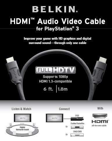 만약 LCD TV나 PDP가 있다면 저렴한 케이블 하나를 구입해 뛰어난 고화질을 경험할 수 있다. 바로 벨킨에서 발매한 PS3 전용 HDMI 케이블과 로지텍코리아에서 출시한 HDMI 케이블 등이다. 이중 벨킨에서 발매한 PS3 전용 HDMI 케이블은 소니의 라이센스를 딴 제품으로 호환성과 안정성이 뛰어나다는 장점이 있다.