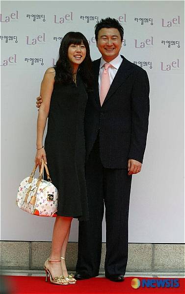 15일 오전 서울 장충동 신라호텔 에메랄드홀에서 열린 박경림-박정훈 결혼식에서 하객으로 참석한 주영훈 이윤미 부부가 취재진을 향해 포즈를 취하고 있다. /유동일기자 eddie@newsis.com
