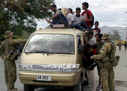 epa01086466 Two Australian peacekeeping soldiers inspect a van on the streets of Dili, East Timor, 08 August 2007. Security forces fired tear gas and rubber bullets at mobs setting government buildings on fire on 07 August, one day after independence hero Xanana Gusmao was named East Timor's new prime minister, police and witnesses said. EPA/ANTONIO DASIPARU