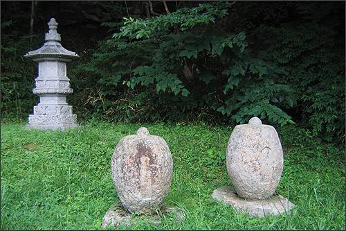 | ▲ 원효국사 탑(좌)과 회운당 부도(우)가 있는 부도밭. |
