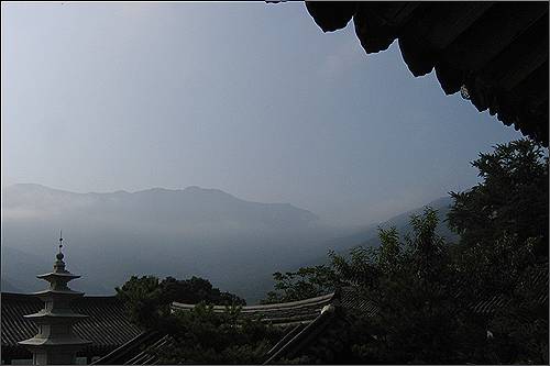 원효사를 떠날 시간이 되었다. 섭섭한 마음에 다시 한 번 무등산을 올려다본다. 봉우리들의 높낮이가 크게 차이지지 않는 무등산은 산 전체가 마치 하나의 봉분 같다.