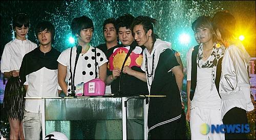 21일 오후 서울 광장동 쉐라톤워커힐 리버파크 야외수영장에서 열린 'Mnet 20's Choice' 시상식에서 인기 그룹상 수상한 슈퍼주니어가 수상소감을 이야기하고 있다.
