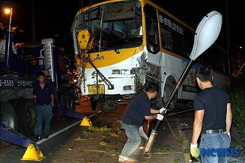 18일 오후 10시5분께 경기 수원시 권선구 평동사거리에서 버스와 승용차가 충돌하는 등 4중 충돌사고가 일어나 20여명이 다쳤다./노호근기자 seraro@newsis.com <관련기사 있음>