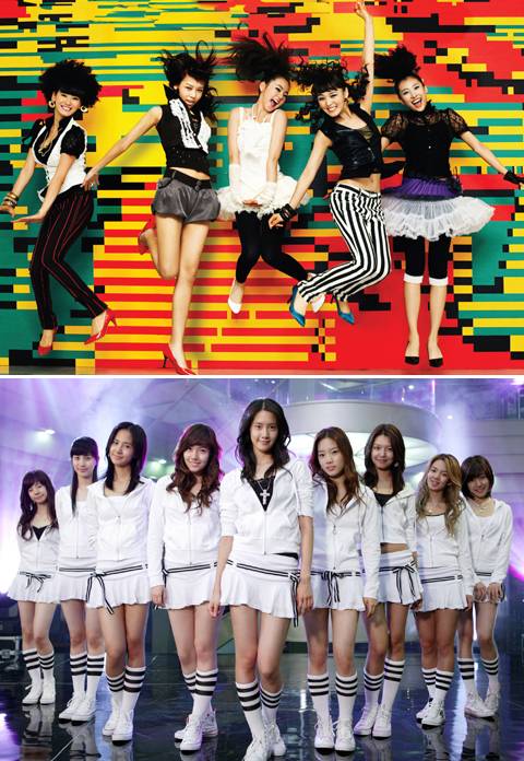 각종 온라인 음악 차트에서 박빙의 1위 자리를 놓고 대격돌하고 있다. 먼저, 여자는 중·고생들로 구성된 5인조 그룹 '원더걸스'와 9인조 그룹 '소녀시대'가 청소년들은 물론 20, 30대 연령층의 폭발적인 지지를 받으며 라이벌 구도를 보이고 있다. 기획사 JYP엔터테인먼트의 박진영 대표가 배출한 원더걸스는 음반시장의 장기 불황 속에 데뷔하자마자 '대박' 행진을 이어가며 지난 5월 월드스타 비가 계약만료로 소속사를 떠난 공백을 메워주고 있다.