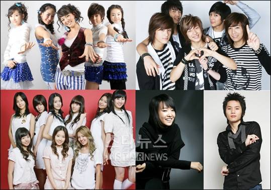 | 사진왼쪽부터 시계방향으로 원더걸스 FT아일랜드 케이윌 윤하 소녀시대 ⓒ머니투데이 스타뉴스 |