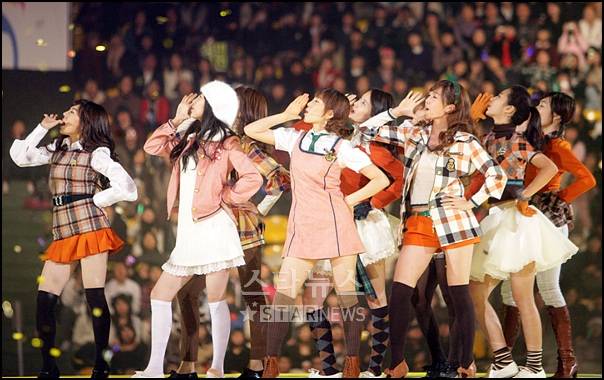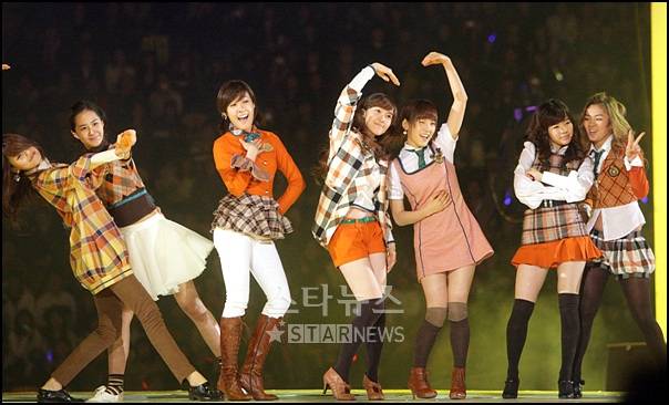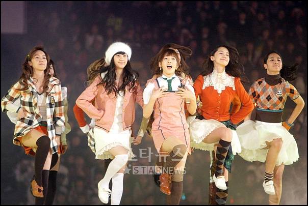 그룹 소녀시대가 17일 오후 7시부터 서울 잠실 실내체육관에서 열린 '2007 Mnet Km 뮤직 페스티벌'에서 '소녀시대'를 열창하고 있다.