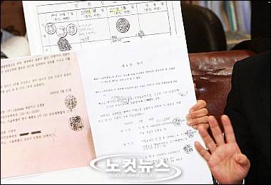 박 대변인은 그러면서 "에리카 김이 한글계약서에는 이명박 후보의 인감도장이 쓰였다고 주장했는데 사실이 아님이드러났다"며 "당시 이 후보는 인감도장을 맡긴 적이 없고, 이 후보의 막도장을 누가 어떻게 사용했는지는 김경준 씨가 알고 있을 것"이라고 덧붙였다.