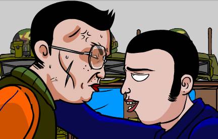 두 명의 말년병장은 잡지를 보며 학력위조 사건에 대해 대화를 나눈다. 그리고 내무반에도 대학생이 2명이나 있다며 자랑을 늘어놓는데, 그들은 바로 김창후 이병과 정지혁 병장이다.