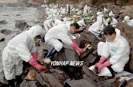 epa01206396 South Korean navy handout picture shows 200 Korean Navy officers working at a port in Taean, South Chungcheong Province, South Korea, 21 December 2007, to clean up a massive oil spill that has polluted the nearby waters and ports since December 07. EPA/SOUTH KOREAN NAVY - HANDOUT EDITORIAL USE ONLY