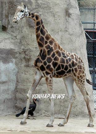<yonhapPHOTO-0152> **FILE** Gemina, a giraffe with a distinctive crooked neck and one of the most beloved animals at the Santa Barbara Zoo, died Wednesday, Jan. 9, 2007. The 21-year-old is shown on her last birthday, July 16, 2007 at the California zoo. (AP Photo/News-Press,Michael Moriatis) /2008-01-11 06:56:14/