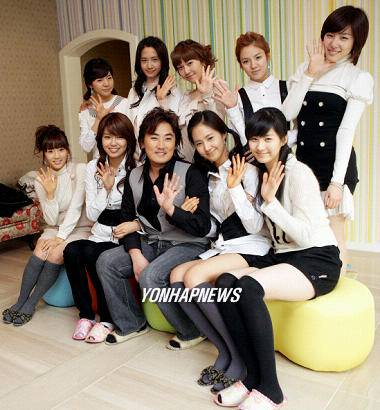 (서울=연합뉴스) 강영국기자 = 15일 오후 논현동 애기스튜디오에서 열린 가수 이승철의 9집 후속곡 '프러포즈' 뮤직비디오 촬영장에서 소녀시대 멤버들이 가수 이승철과 함께 포즈를 취하고 있다.