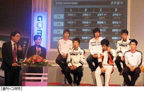 28일 저녁 서울 암동 tvN 스튜디오에서 진행된 조추첨식 결과 A조에 CJ 마재윤, KTF이영호, 르까프 오영종, 위메이드 박성균이 편성됐다.