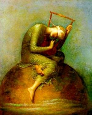 젊은 여인이 수금에 남아 있는 단 한 줄의 현으로 음악을 창조하려 하고 있다. 기력이 쇠잔한 듯 그녀의 눈은 붕대로 감겨 있으며, 지구처럼 생긴 공에 쓰러질 듯 기대어 물 위를 떠다니고 있다. 수금에 귀를 붙인 채 한 손으로는 연방 수금을 타느라 여념이 없다.