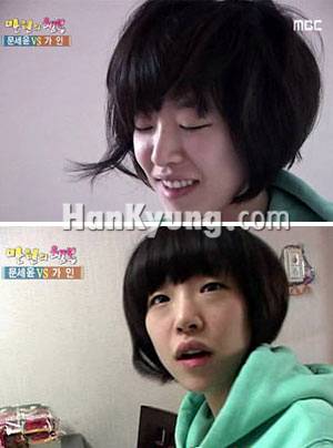 가인은 "방송에서 처음 쌩얼을 공개하는거다"며 귀엽게 울먹이기도 했다. 담당PD에게 만두를 건네며 "쌩얼은 그만 찍어달라"는 귀여운 앙탈을 부리기도 했다.