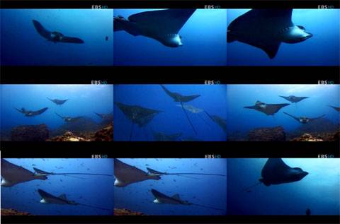 [TV리포트] 우주공간을 비행하는 우주선처럼 유유히 바다 속을 헤엄치는 한 무리의 생물. 이들의 정체는 다름 아닌 '매가오리'이다. 지난 31일 방영된 EBS `다큐프라임`에서는 매가오리 떼의 환상적인 이동장면을 선보여 눈길을 끌었다.