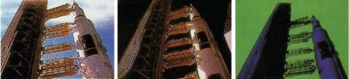 <터미네이터 2>에서 스크린 프로 세스를 이용한 촬영 모습. 2, 3 번째 장면을 보면 알 수 있다. 이것은 스튜디오의 스크린 프로세스 앞에서 두 연기자가 연기를 한 것 이다. 뒤에오는 트럭이 바로 스크린 프로세스이다. |