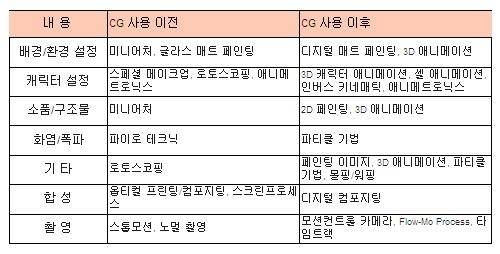 CG 사용 이/전후의 특수시각효과의 변화 |