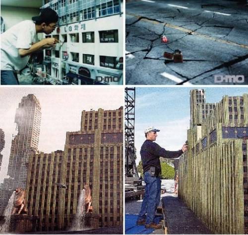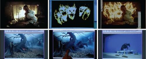 CG 사용 이전의 특수효과 (전통적인 특수효과, 여러 가지 효과를 접목시켜 한 시퀀스를 구성)· 최근에는 옵티컬컴포지팅 보다는 디지털 컴포지팅,즉 CG 작업으로 대체되고 있다.· 옵티컬컴포지팅 작업은 촬영 종료 후 네거티브 필름으로 작업한다. CG 사용 이후 특수효과(CG 만으로 부분적인 완벽한 영상은 만들 수 있으나, 전체 샷에서는 사실감의 결여로 전통적인 특수효과와 같이 쓰는 경우가 많다) |