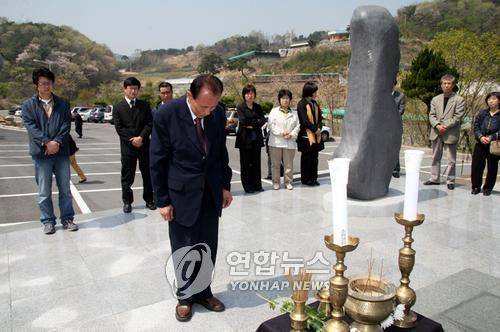 (김해=연합뉴스) 황봉규 기자 = 2002년 4월15일 경남 김해시 돗대산에서 발생한 중국 국제항공공사(CA)의 여객기 추락사고 6주기 추모제가 15일 김해시 상동면 묵방리 경남영묘원 내 추모공원에서 열렸다.