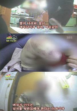 그렇다면, 아내 김 씨는 왜 이런 모욕을 견디며 살아 왔을까. 그 이유 역시 놀라웠다. 취재진을 만난 날, 김 씨는 온몸에 피가 흐를 정도로 매를 맞았다고 했다. 가까스로 병원에 후송 돼 긴급 치료를 받은 후, 근처의 여성보호센터에 지내고 있던 그는 가까스로 말문을 열었다.