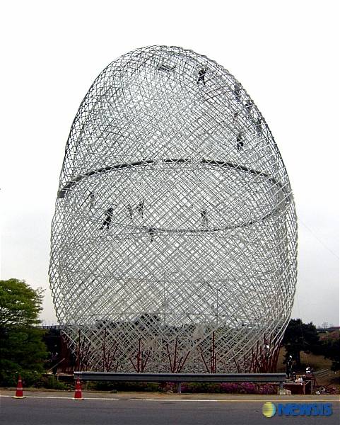 1일 시에 따르면 '안산소나타' 라는 명칭의 계란모양 조형물은 '알이 잉태한다' 는 뜻을 담고 있는 조형물로 대부도 방아머리(조형물 학지) 주변 등 2곳에 총 20억9000만원을 들여 설치한 뒤 안산시에 기부채납 형식으로 추진됐다.