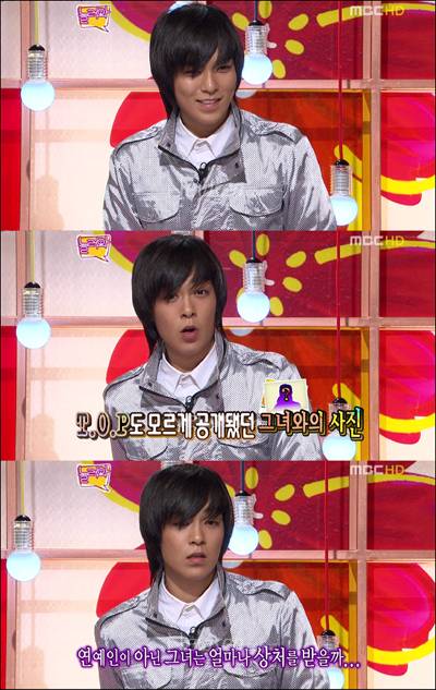 하지만 이어 탑은 마음을 단단히 먹은듯 수줍어했던 이날 모습과는 달리 "방송에 나와서 확실하게 말하고 싶었다"고 정색을 하고 솔직한 심경을 토로했다. 탑은 "예전에 그분과 함께 찍은 사진이 인터넷에 공개된 적이 있는데 그 사진에 그분 얼굴이 공개되고 악플이 달린 것을 보고 화가 났었다"며 "나는 연예인이라 사생활 보호가 안되는 게 상관 없지만 연예인이 아닌 그분은 얼마나 상처를 받겠느냐"며 떨리는 목소리로 네티즌에게 자제를 호소, MC들의 격려 섞인 위로를 받았다.