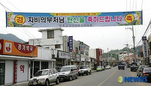괴산성당 신자 일동으로 내건 플래카드는 불기 2552년 석가탄신일 나흘을 앞두고 '자비의 부처님 탄신을 축하드립니다'란 문구를 담은 플래카드를 시가지 거리에 내걸었다.