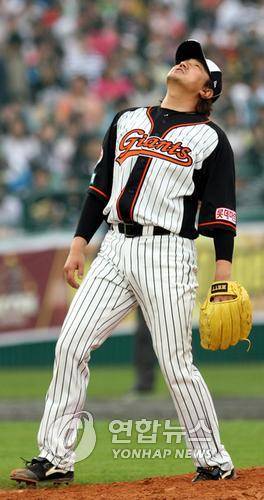 (부산=연합뉴스) 오수희 기자 = 18일 부산 사직야구장에서 열린 프로야구 롯데-우리 경기에서 롯데 선발 손민한이 4회초 우리 선두타자 이숭용에 대한 볼 판정에 아쉬움을 표현하고 있다.